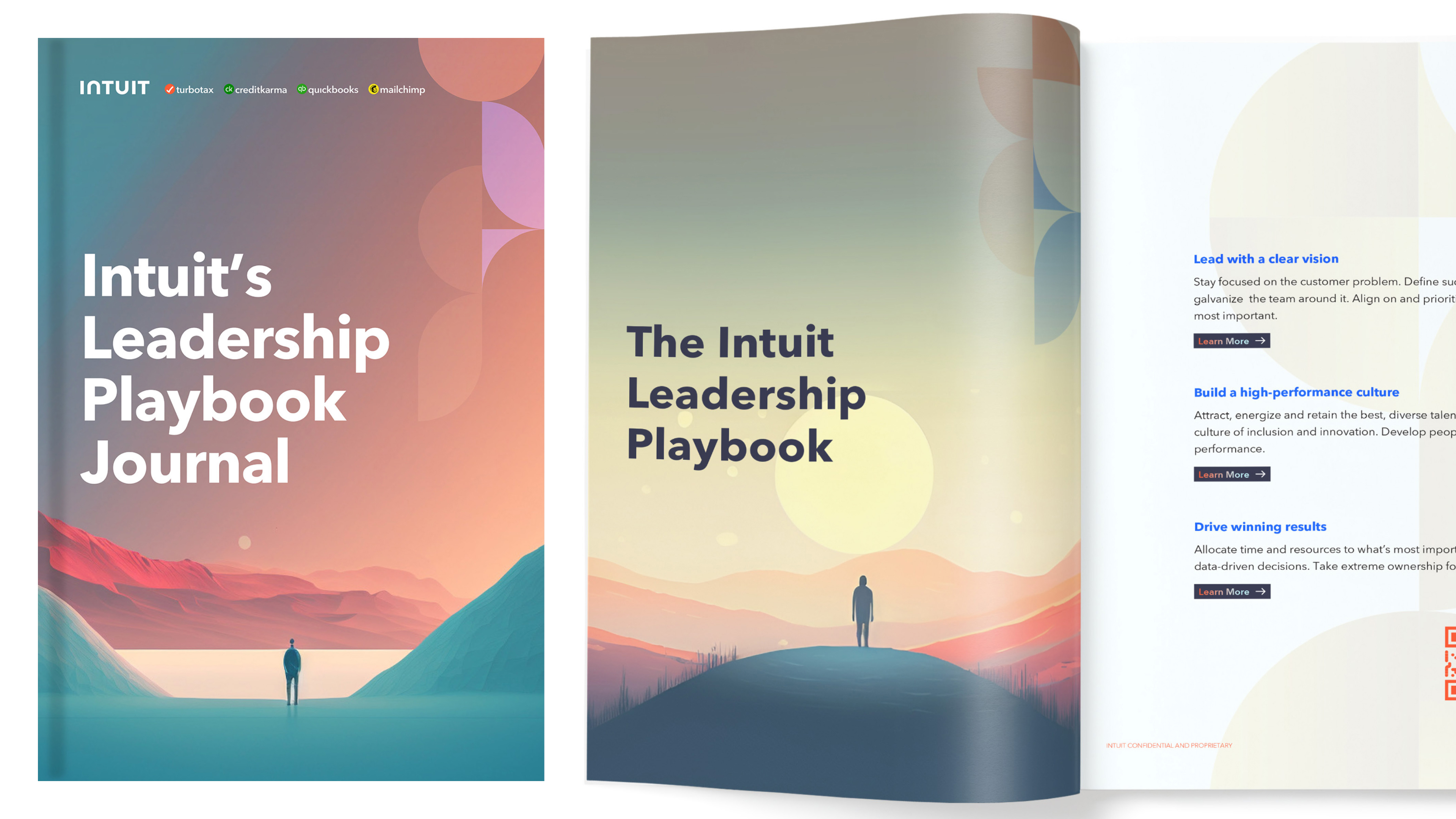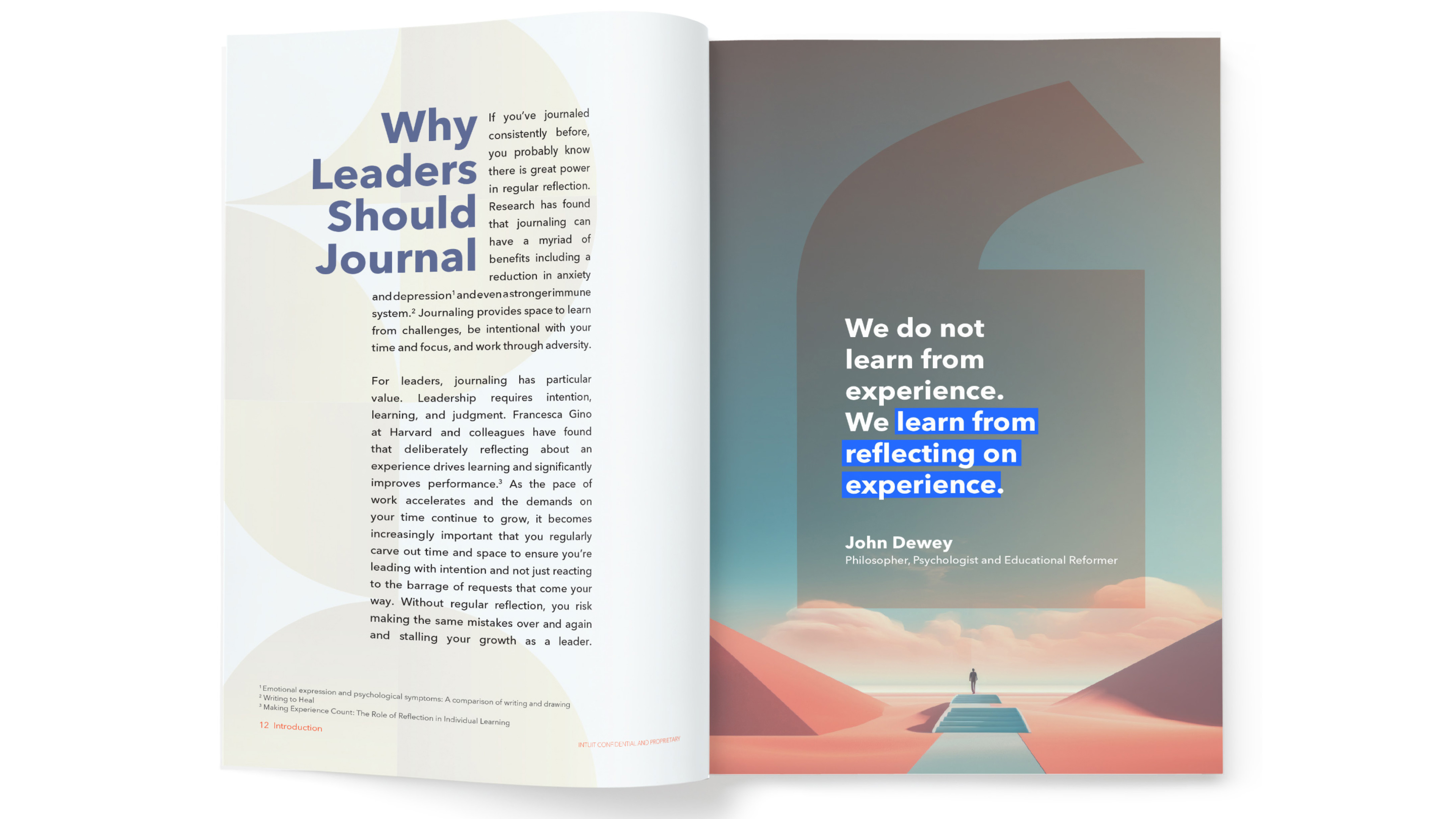 Journal design for a software company that specializes in financial software. A playbook/journal for leaders with inspiring visuals to encourage reflection