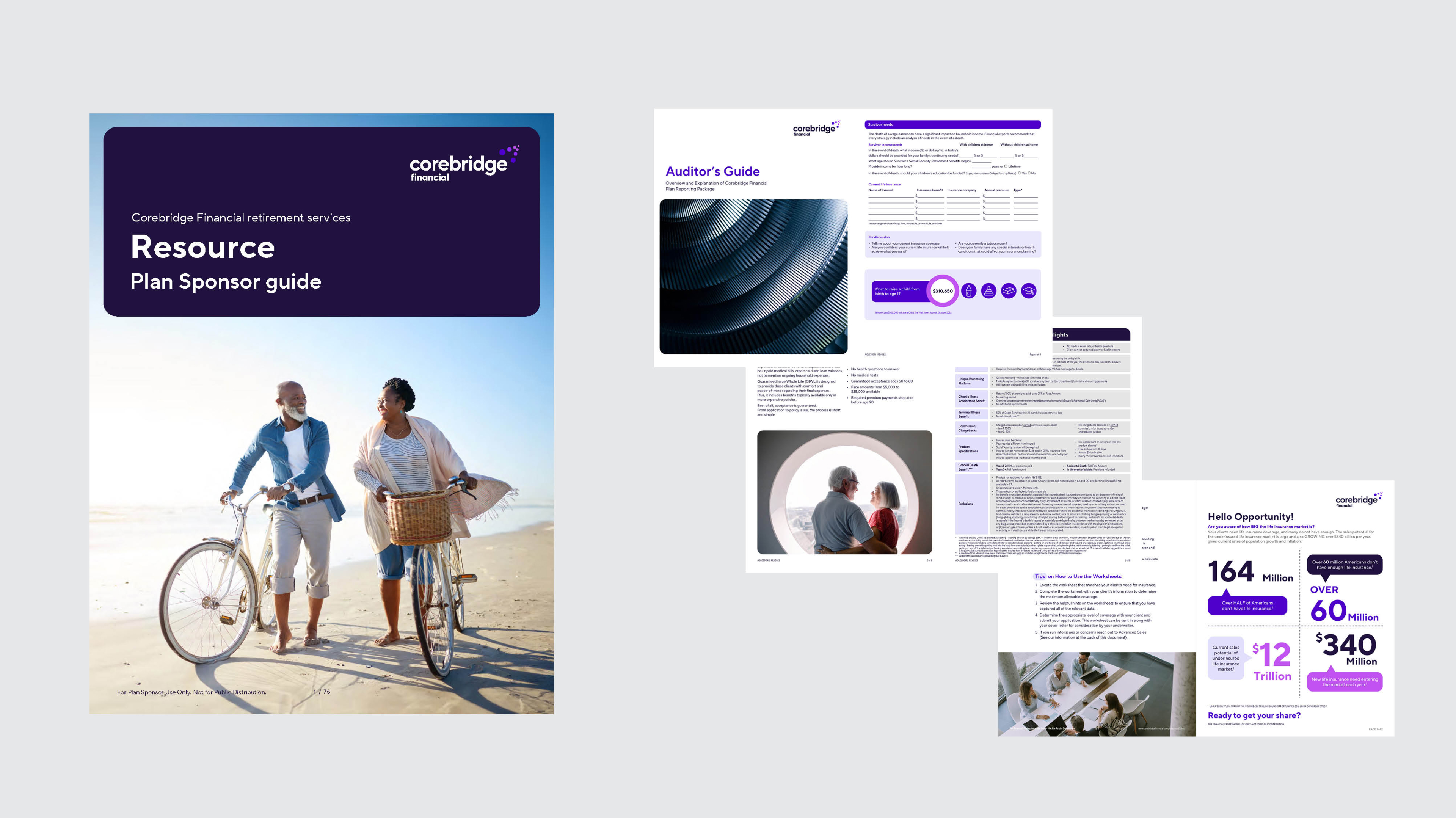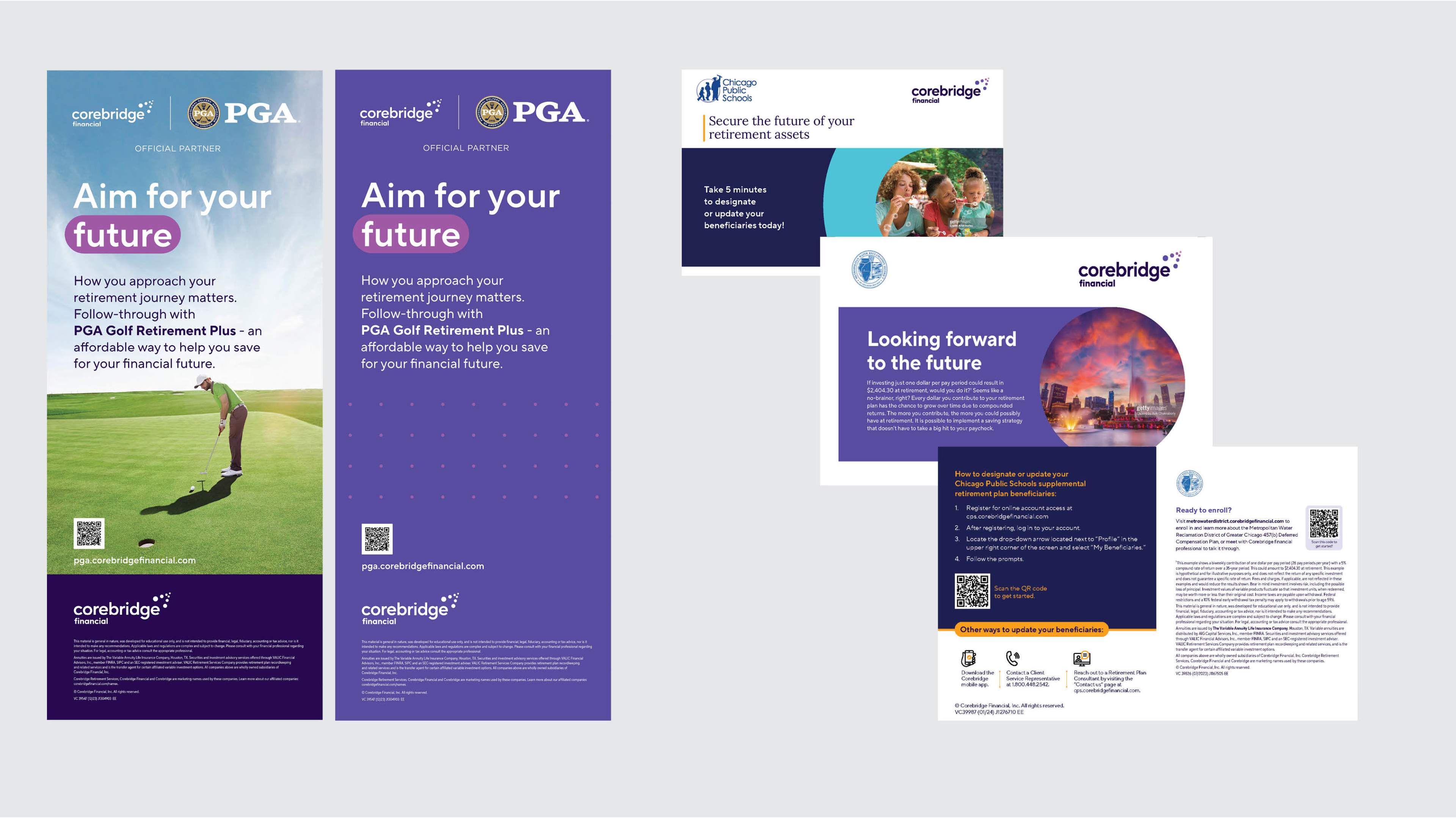 Print design for a financial, retirement, investment and insurance company. Detailed, yet uncluttered, brochures on the variety of options offered to customers