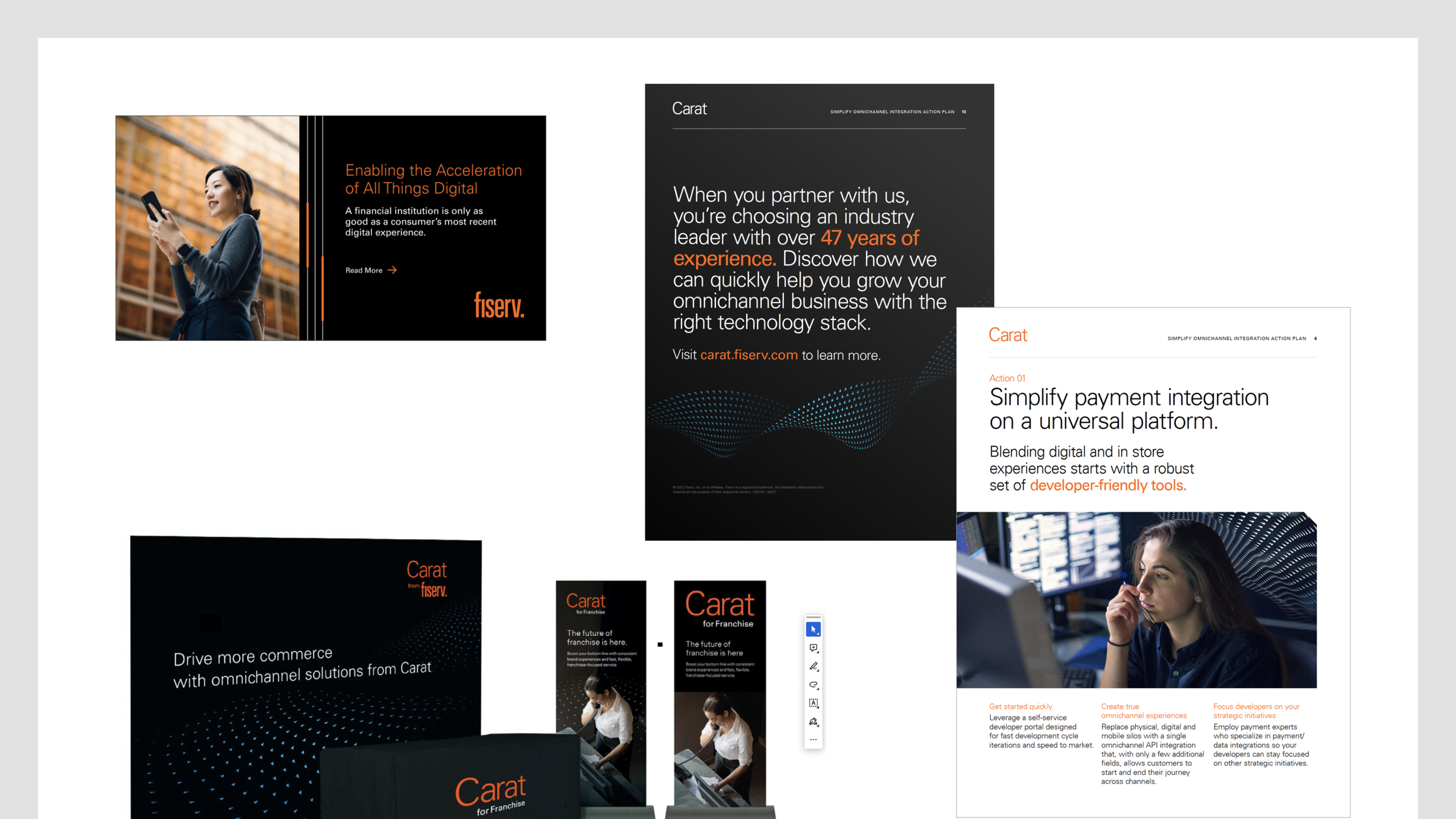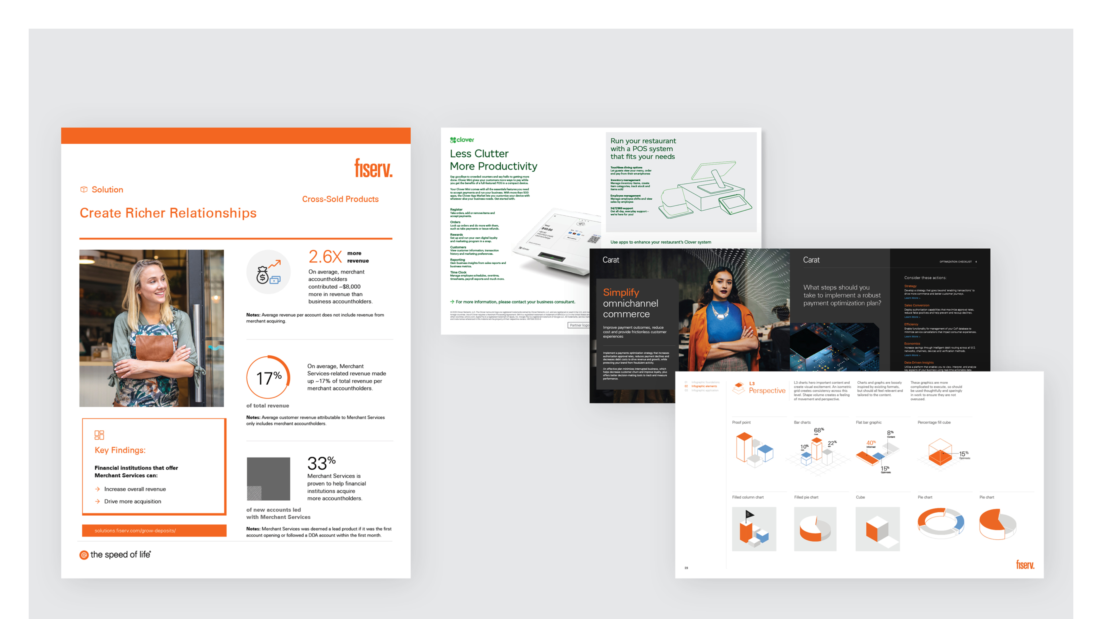 Print and digital design for a multinational financial services corporation. Includes reports and customer outreach emails
