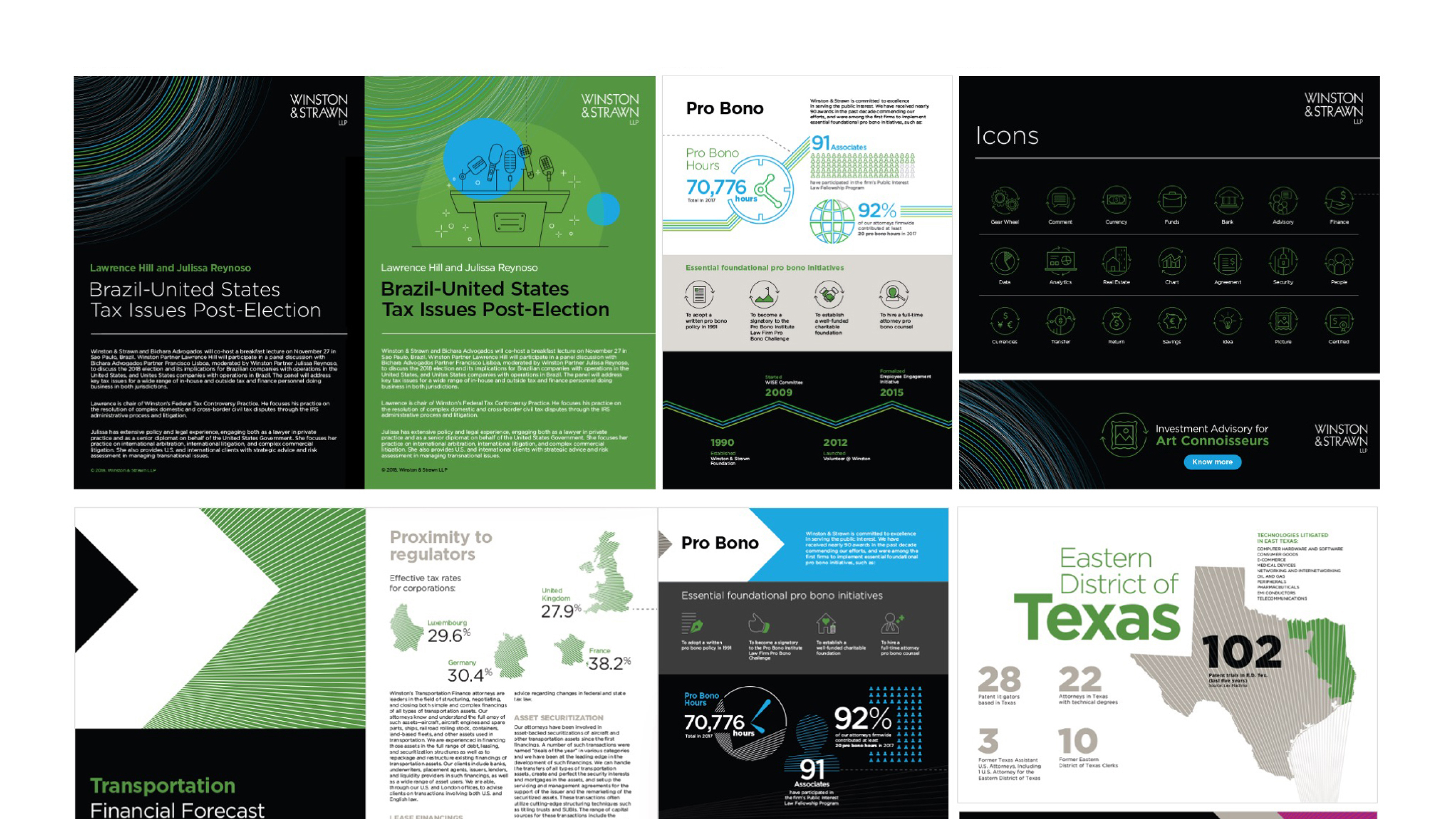 Brand refresh for an international law firm. Design language that emphasizes their global presence and draws attention to their expertise in decluttering complicated cases